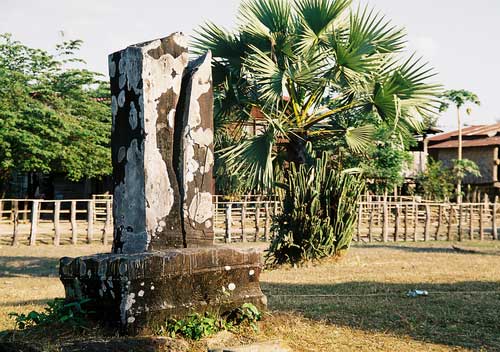 And far to the south the setting sun was reflecting off the Ban That baray near the village of Ban That (village of the towers) in the Sukhuma district of Champassak province where King Suryavarman II erected three stupas and a stele in honor of King Dharanindravarman I. The first recording of the sanskrit on a stele in front of the three towers was done in 1876 by a Mr. Harmand and later translated by the Dutch scholar Mr. Kern and published in the Annales de l'Extrême Orient. In 1901 the French epigraphist Etienne Aymonier expanded on Kern's translation in his book "Khmer Heritage in Thailand"; now available from White Lotus Press in Bangkok.