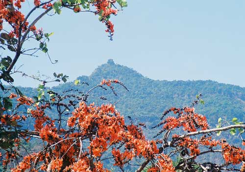 Mt. Phu Kao immediately focuses your attention to the summit as no other small mountain can do. It's as if in its own way the mountain is trying to announce something profound or waiting to direct the eyes of the beholder to look at something very special. The mountain commands one to look in its direction because none of the other hills are as unique. It is unique and different and holds its own as a singular presence like none of the other hills. Surely such a mountain would be thought of having supernatural powers and perhaps in order to even address those powers rites and rituals would have had to be conducted long before any consideration would be given to scale its summit.