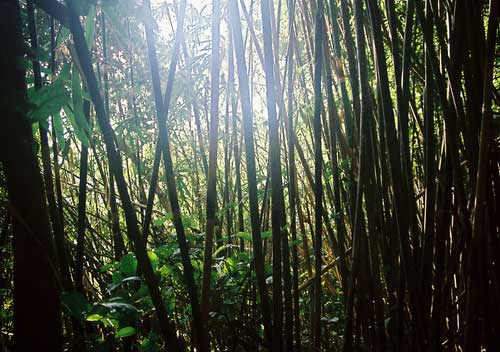 The bamboo forest became a dark green landscape of endless masts reaching to the sky. And all through this amazing visual and aural odyssey I was still groping up the mountain thinking I had reached the limits my legs could carry me any further, but nevertheless I continued climbing until we finally reached the campsite.