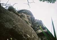 I broke pieces of bread and set them on the stone altar along with pouring water on the face of the stone as if I were in some holy sanctuary. I had no other strength other than what it took to kneel down in front of this massive stone. My legs were burning from the inside out as every muscle in my body was stressed after such a long climb. When I pressed my forehead against the cool stone I had the thought that someone had opened a large hidden door on the face of the stone and I entered the mountain experiencing a momentary sense of quiet that engulfed me completely. I was in deep meditation partly due to a moment of relaxation and partly due to loosing my concentration in solemn respect for the opportunity to be where I was. I could feel the enormity of this stone outcropping, and if ever I was going to be at the threshold of the gods it was then at that singular moment. I felt very small and insignificant next to this pillar of stone and as I slowly opened my eyes and leaned back I looked straight up at the towering stone Lingaparvata.